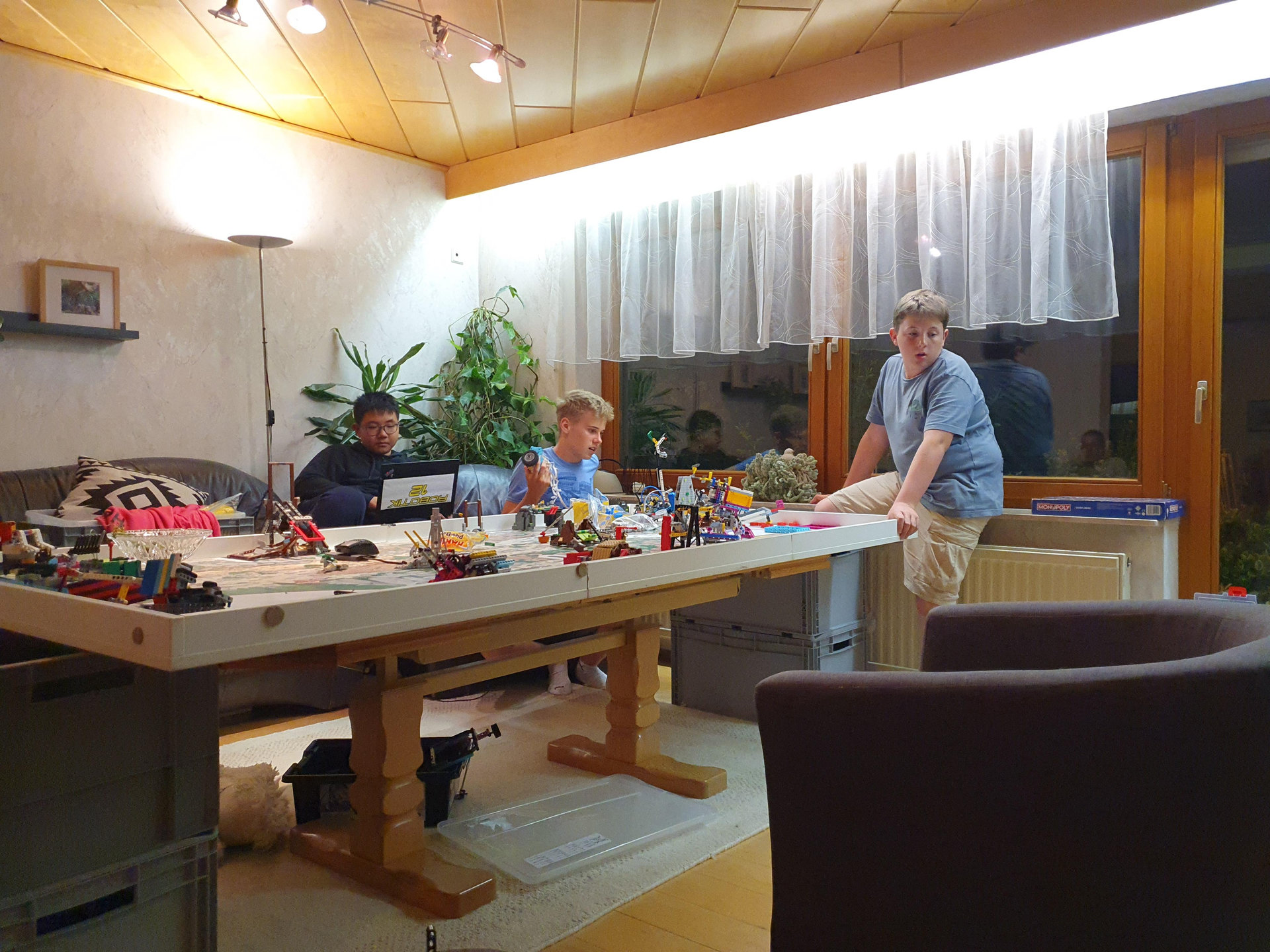 Am ersten Tag trafen wir uns erst einmal verschlafen am Heidelberger Hauptbahnhof. Die nächsten paar Stunden würden wir in der Bahn verbringen. Die Fahrt verlief trotz teilweise sehr knappen Umstiegszeiten sehr gut und wir kamen pünktlich in Heroldstatt an. Nachdem wir schon die ersten Einkäufe im nahegelegenen Supermarkt erledigt hatten, kam auch unser Gepäck an. Das Spielfeld samt LEGO hatten leider nicht mehr in die Bahn gepasst. Glücklicherweise hatte sich Herr Hasenauer bereiterklärt, uns mit dem Auto zu unterstützen. Dafür möchten wir nochmals herzlichst bedanken. So schnell war unser erster Tag auch schon vorbei. Nach einer (mehr oder weniger) kurzen Diskussion über die Aufstehzeit am nächsten Tag fiel uns das Einschlafen nach diesem dann doch anstrengenden Tag sehr leicht.